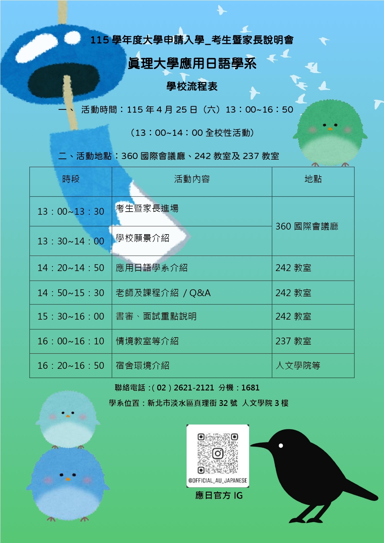 【應日系】115學年度大學個人申請_考生暨家長說明會(學校活動流程)