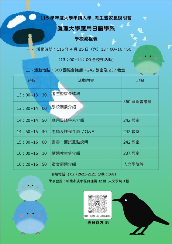 【應日系】真理大學應日語學系官方IG....歡迎新生加入!