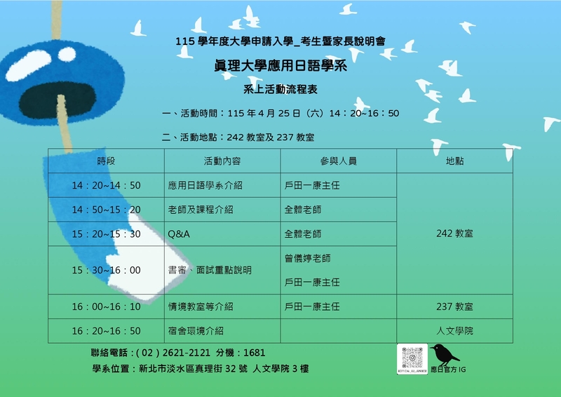【應日系】115學年度大學個人申請_考生暨家長說明會(系上活動部份)